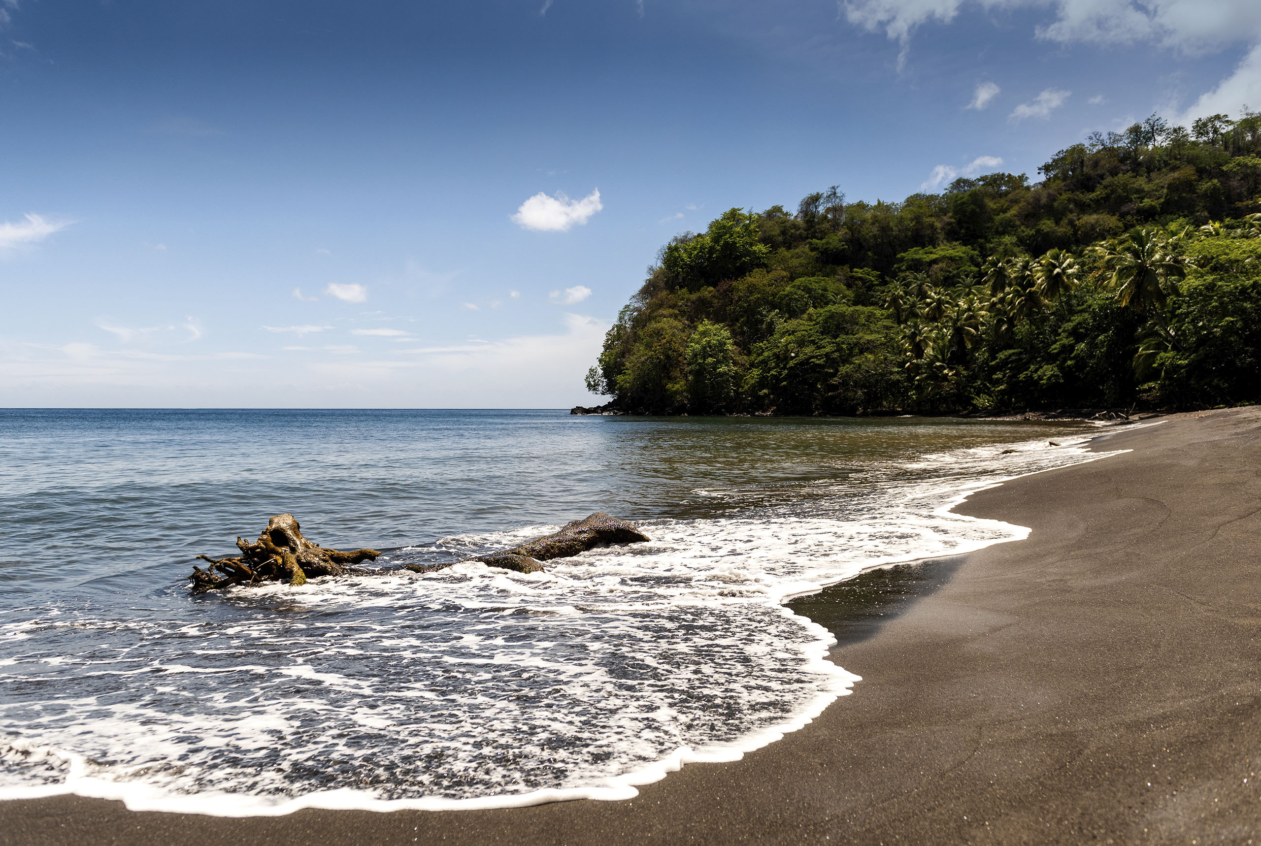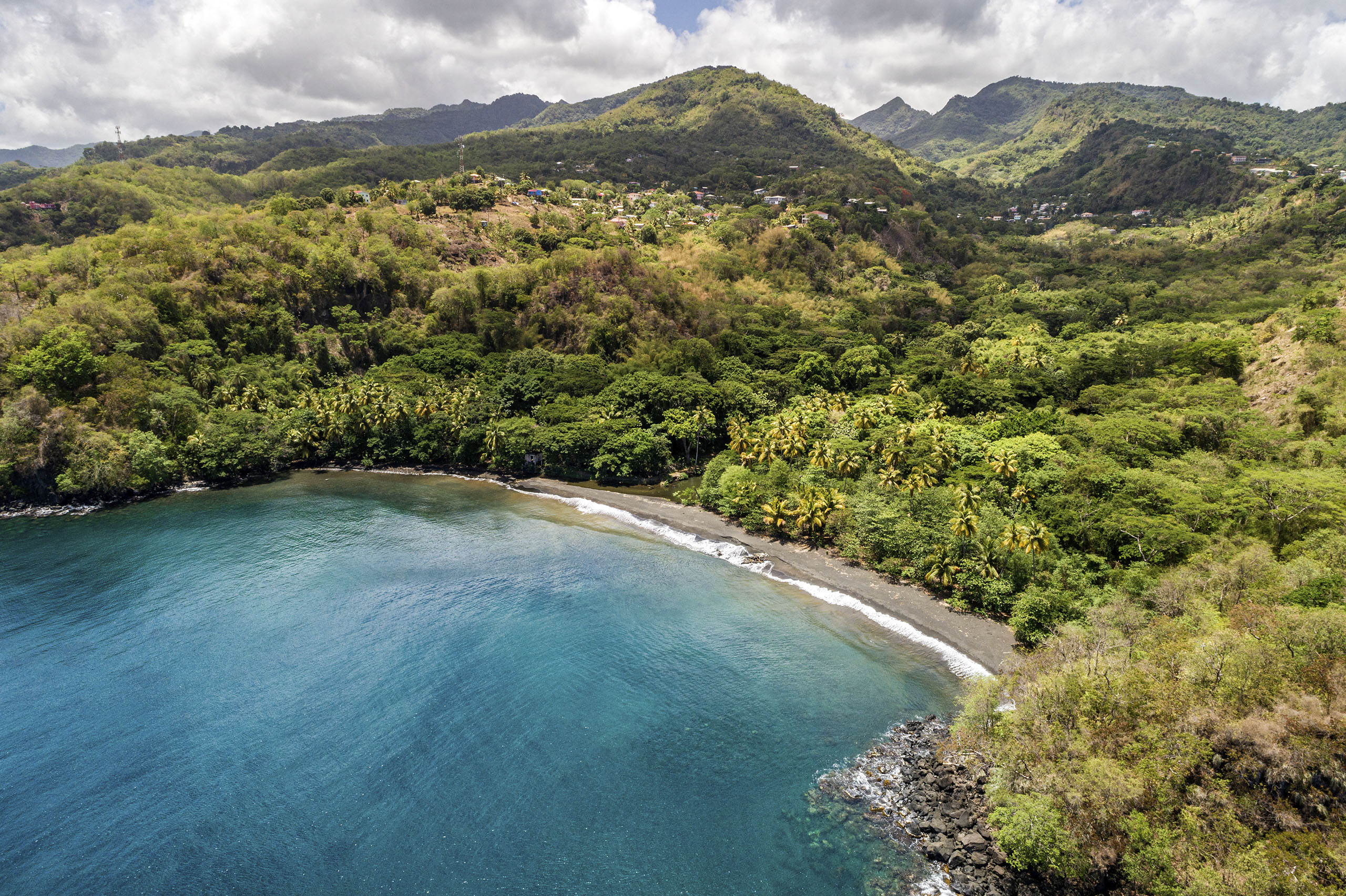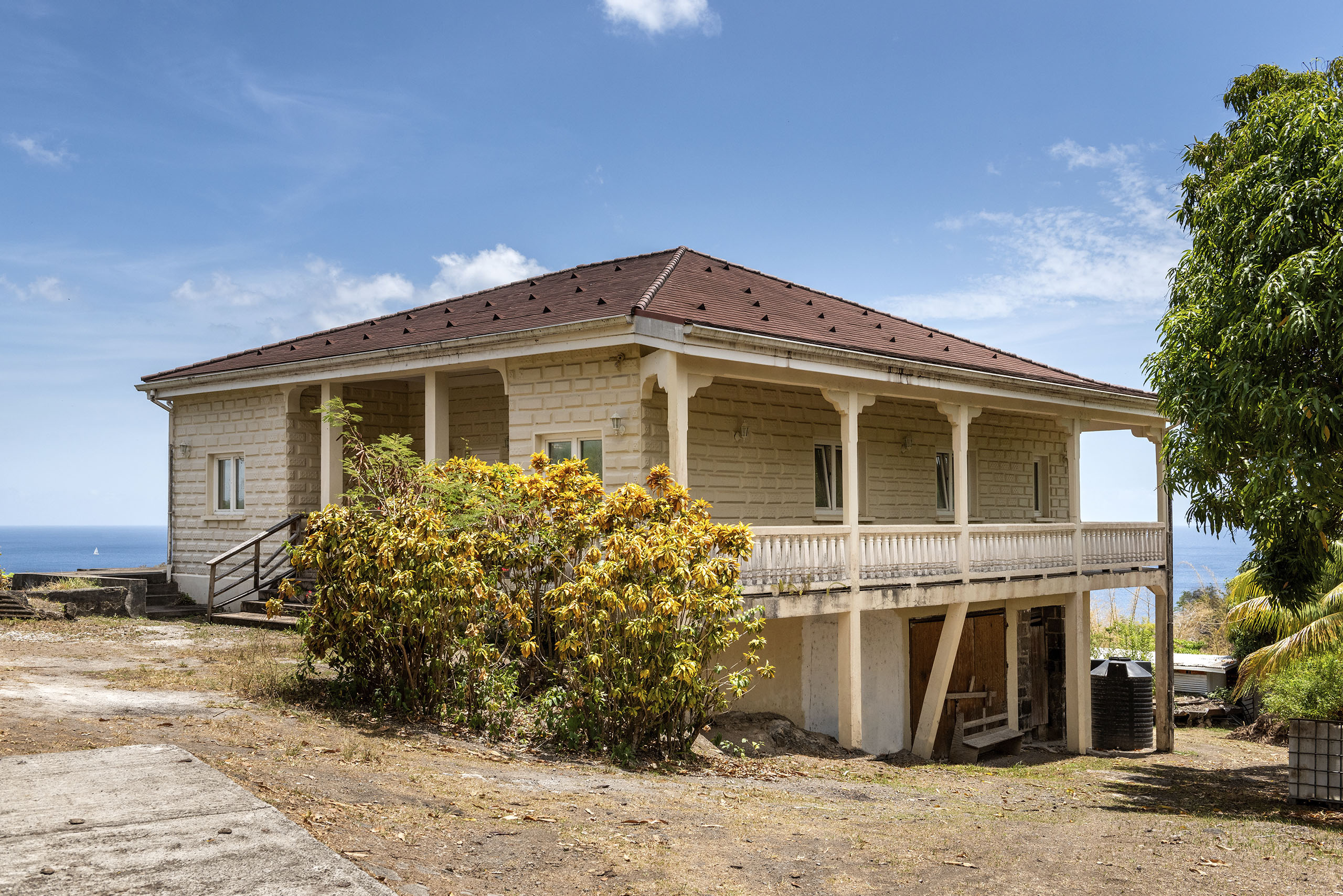 Nestled in tropical rain forest, the great house sits on a cliff overlooking the sea and the entire 92 acres of agricultural land, including the direct access to its beautiful black sand beach. The Black Bay River turns the historic land into fertile soil, which thus allows for the cultivation of fully organic cocoa, soursop, pawpaw, oranges, bananas, plantain, avocado, and coconuts. This agricultural site is located in St. John, and currently for sale.