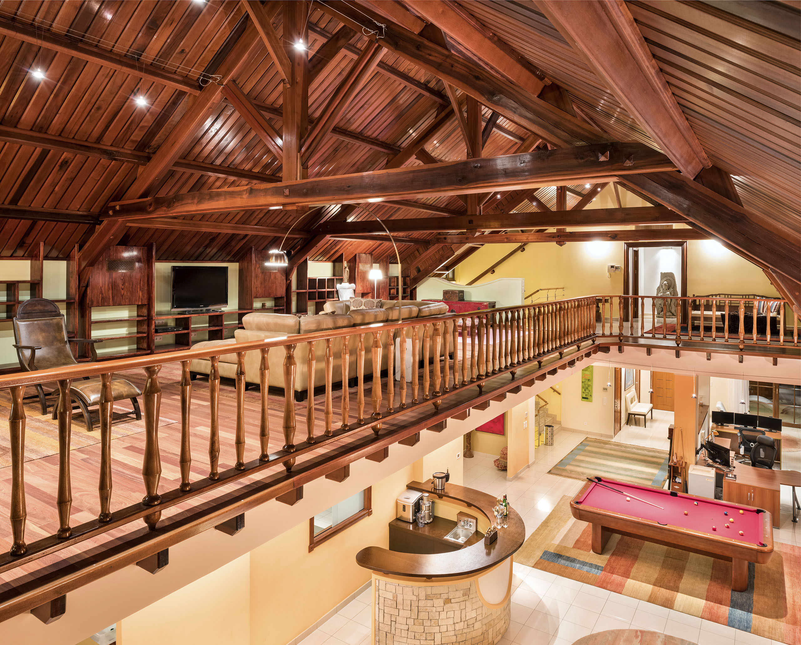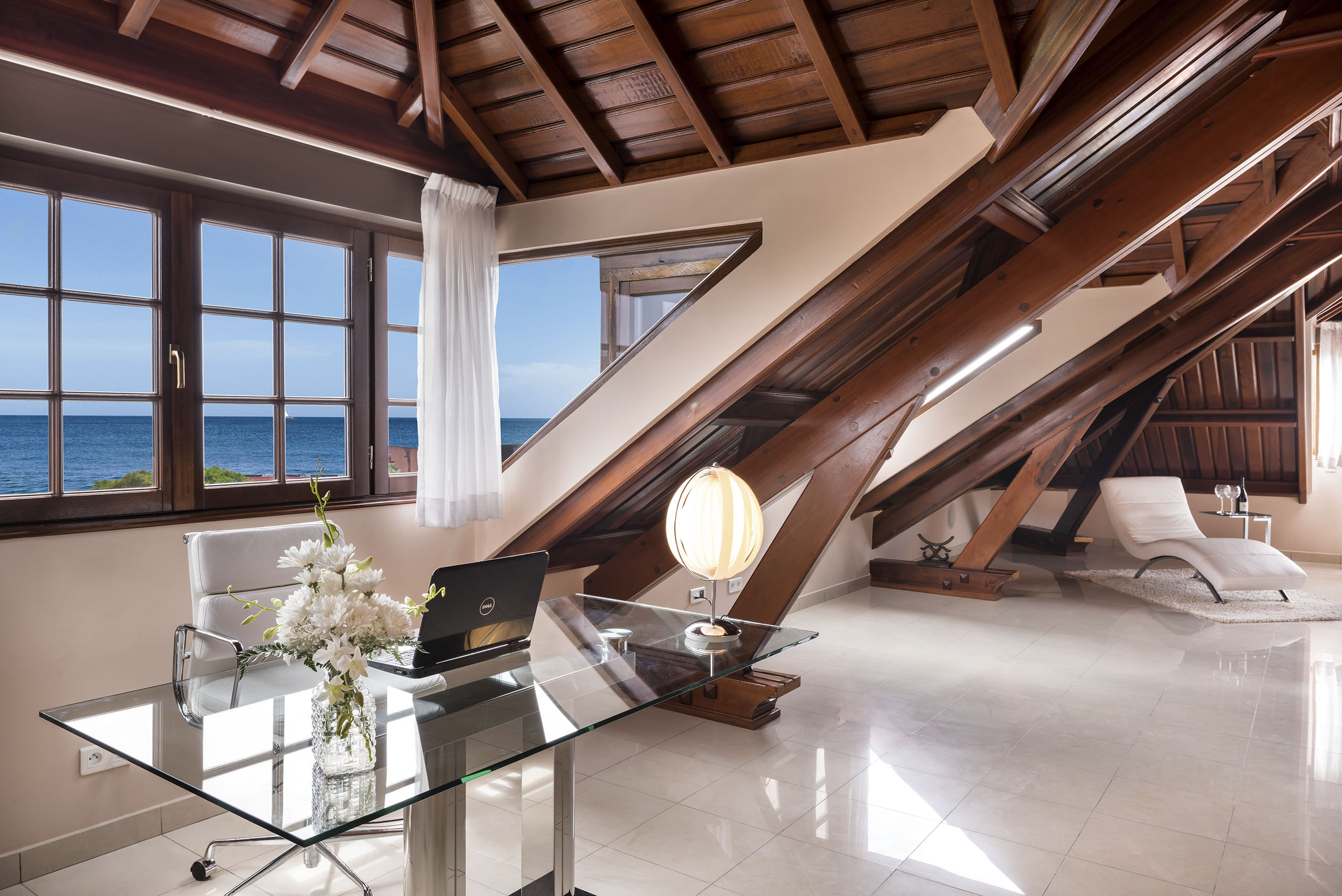 On the top floor of the main property you will find four fully furnished apartments (four bedrooms and four bathrooms), and even two jacuzzis overlooking the bay from the balconies. What better way to enjoy a sundowner after a successful workday.
